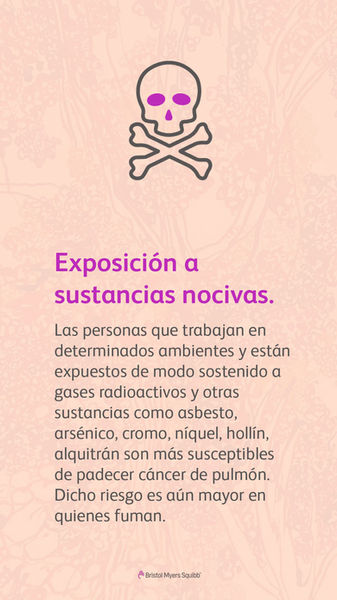 (American Cancer Society. Factores de riesgo para el cáncer de pulmón. https://www.cancer.org/es/cancer/cancer-de-pulmon/causas-riesgos-prevencion/que-lo-causa.html)